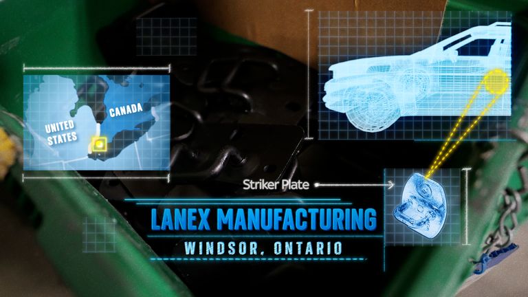 The factories here produce components that regularly cross the border. We visited a plant called Lanex, another metal parts specialist, which makes many of the strikers used in leading American cars to secure the doors in place. These steel parts cross the border at least four times before they are even installed in the finished car.