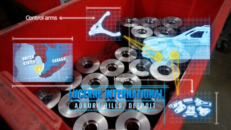 Another such example is Lucerne International, in the suburbs of Detroit. They make metal parts that go in and on leading American cars – including some of the most iconic ones. Those hinges that secure the back door of a Jeep Wrangler to the body? They’re made of steel and aluminium provided to Stellantis by Lucerne. But here’s where things get interesting, because it turns out the steel forging happens not in Michigan but in China. The aluminium comes from Taiwan. And all of those parts are now due to incur tariffs – tariffs that are likely to be very sizeable indeed. But how sizeable?