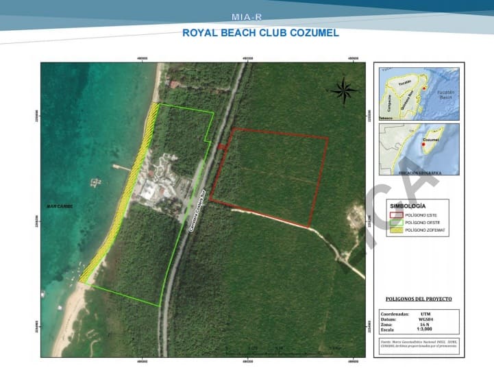According to the government document, “the Promoter proposes to develop the “Royal Beach Club Cozumel” project in the municipality of Cozumel, Quintana Roo. The selected site is located in a previously impacted area where recreational activities similar to those planned, such as those at Playa Mia Beach Club, are currently carried out.