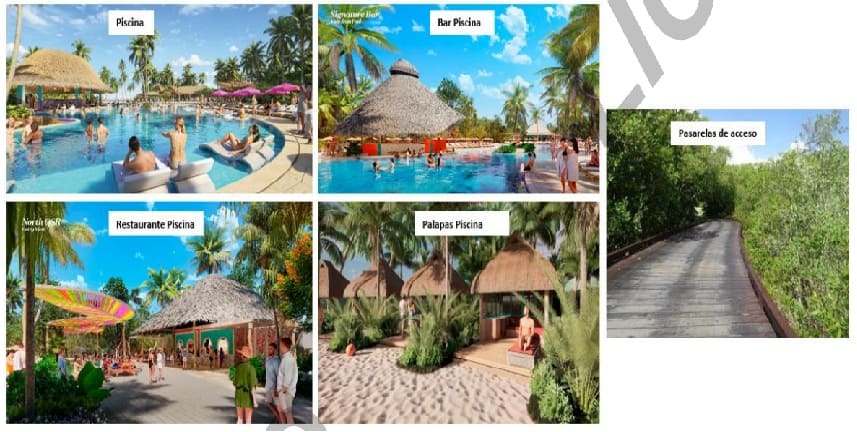 The project occupies a total area of 17.42 ha. The breakdown of land use includes 1.1 hectares located in the Federal Maritime-Terrestrial Zone (ZOFEMAT), designated for semi-permanent facilities (beach lounge chairs and palapas) and 4.29 hectares in a private land area to be used for the main infrastructure of the Beach Club (restaurants, swimming pools, operations buildings, restrooms, access points, among others).
