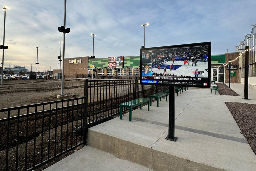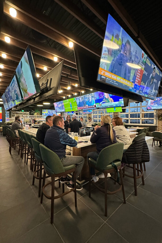 The complex has nearly 100 TVs and two giant video walls. It also features three private event spaces, one with some putting technology.
