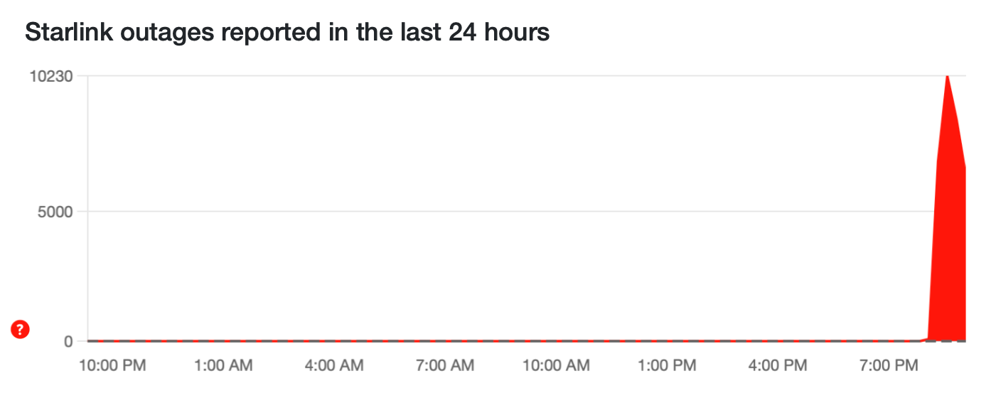 Thousands have taken to Down Detector to report the Starlink outage, with reports streaming in from just before 9pm.