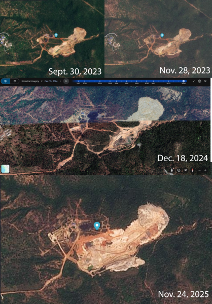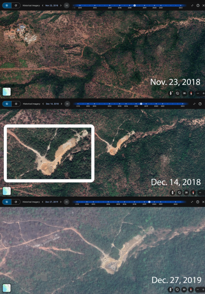 Satellite images taken from Google Earth show the mine during 2018 and 2019.