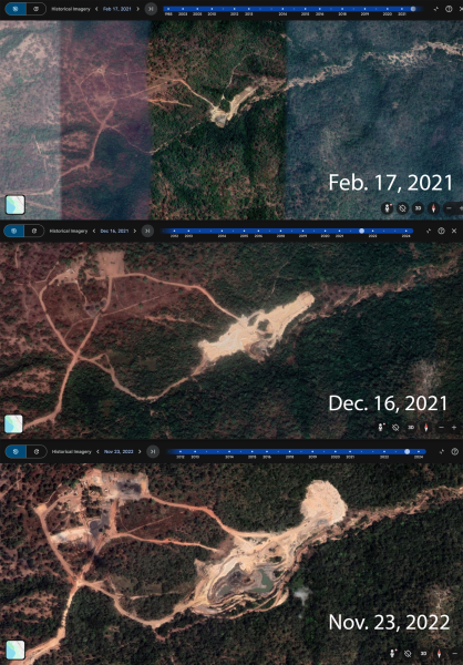 Satellite images taken from Google Earth show the mine in 2021 and 2022.