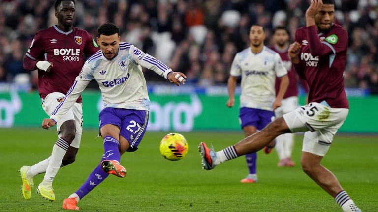 Morgan Rogers fires in a stunning strike to give Aston Villa the lead at West Ham.