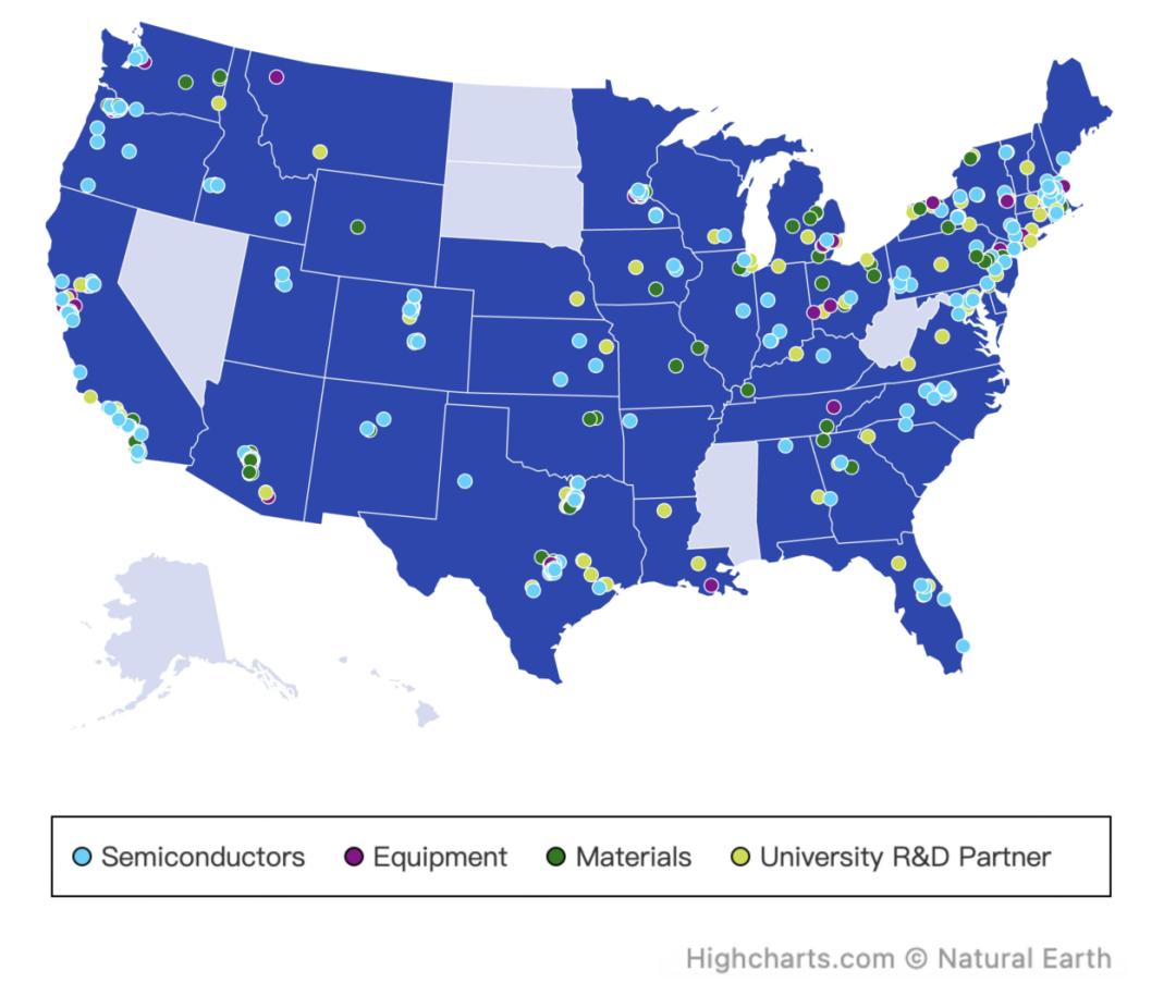 Next, we will systematically sort out the spatial layout and functional division of labor of the U.S. semiconductor industry by state and region.