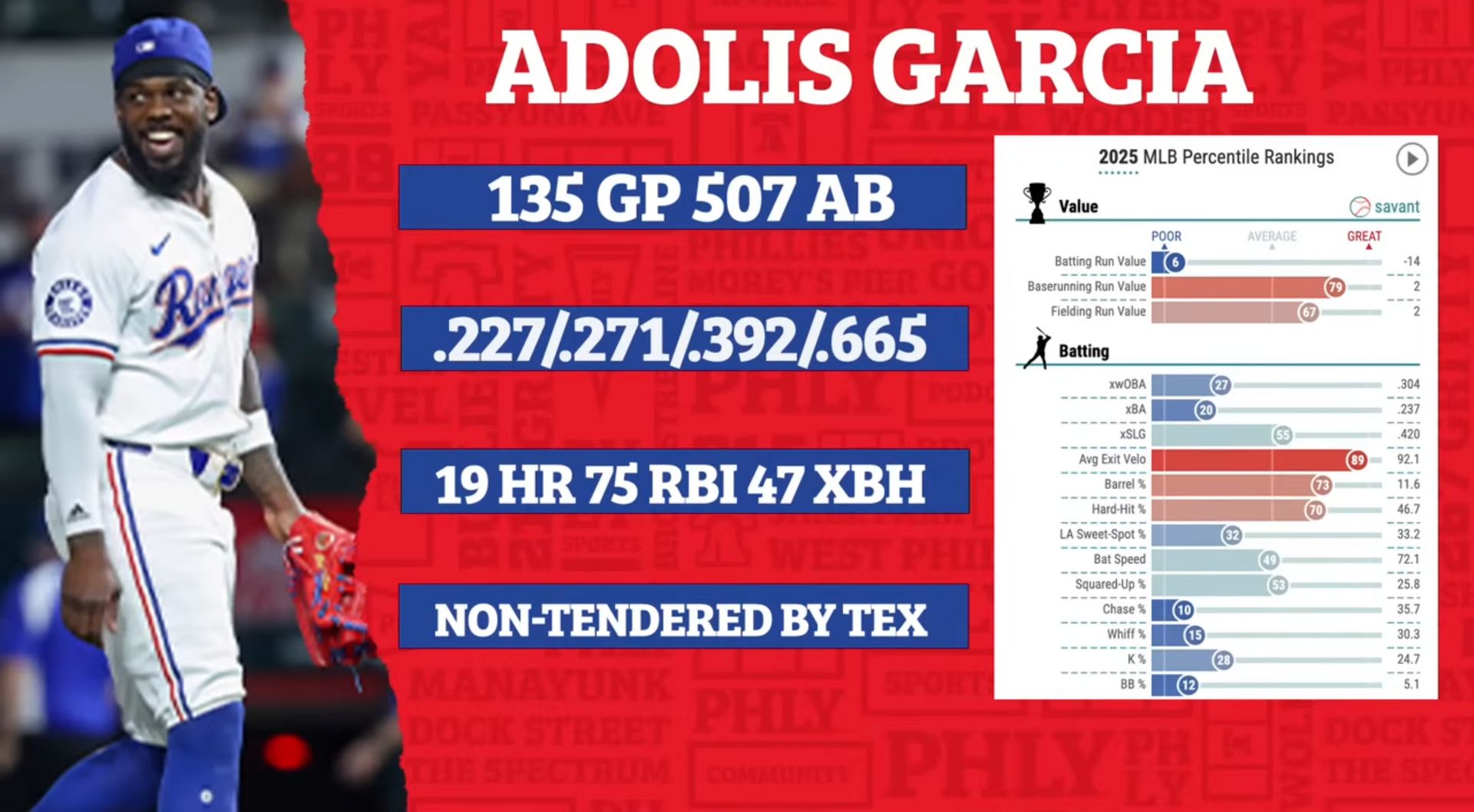 We will find that part out when everything else shakes out. Until then, is Adolis García likely gonna be the cleanup hitter that legitimately protects Kyle Schwarber or Bryce Harper? Unless he turns back the clock to 2021-23, maybe not. But 27-ish home runs with good defense would not be a bad consolation prize.