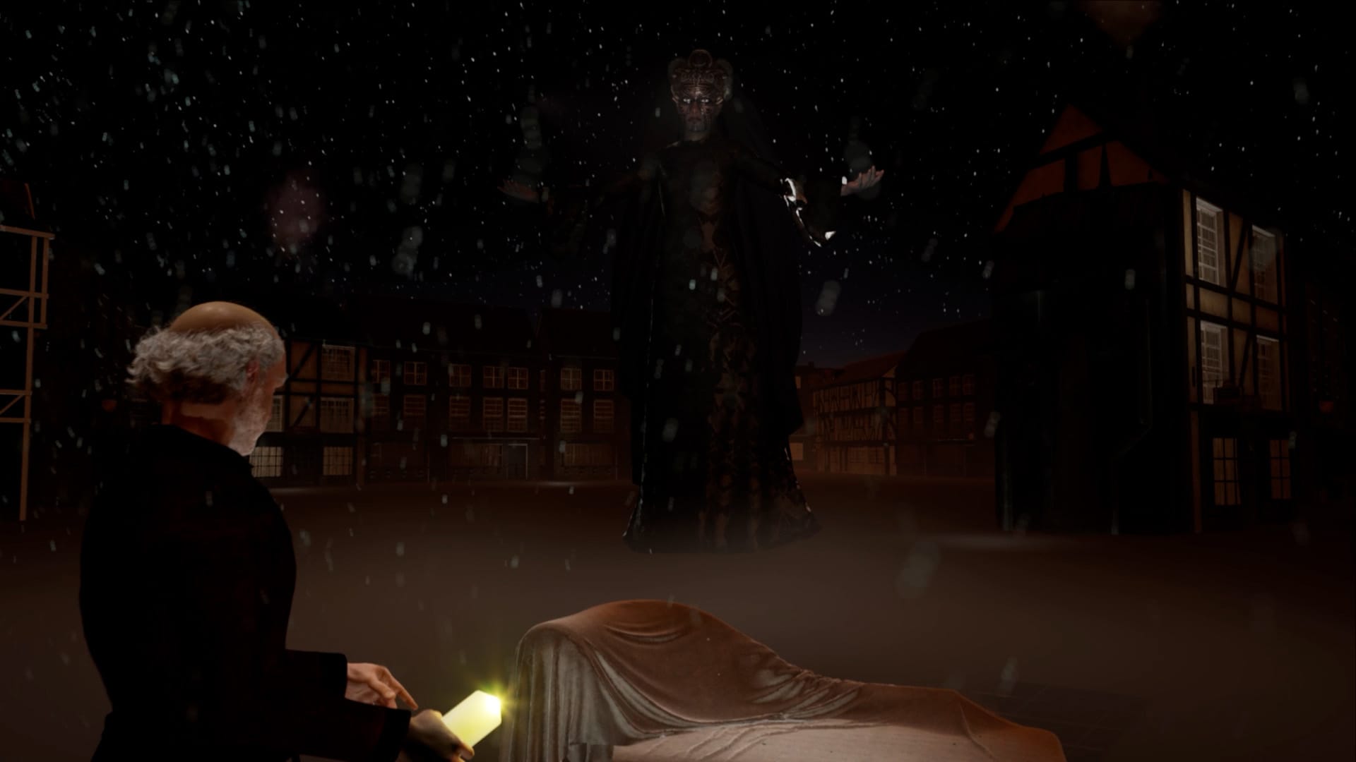 Tickets are free in Quest 2 or newer VR headsets to the final live showings held from Friday to Sunday. The performance stars Ari Tarr as Dickens and Scrooge with Debbie Deer as the ghosts, both of them wearing Quest Pro headsets for face and body capture. You’ll become a ghost yourself during the tellings this weekend, and visible to Scrooge as a disembodied spirit helping him come to terms with his behavior.