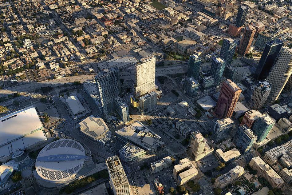 New plans uploaded earlier this month by the L.A. Department of City Planning reveal renderings for AEG’s proposed mixed-use high-rise development that would rise just north of the J.W. Marriott hotel complex.