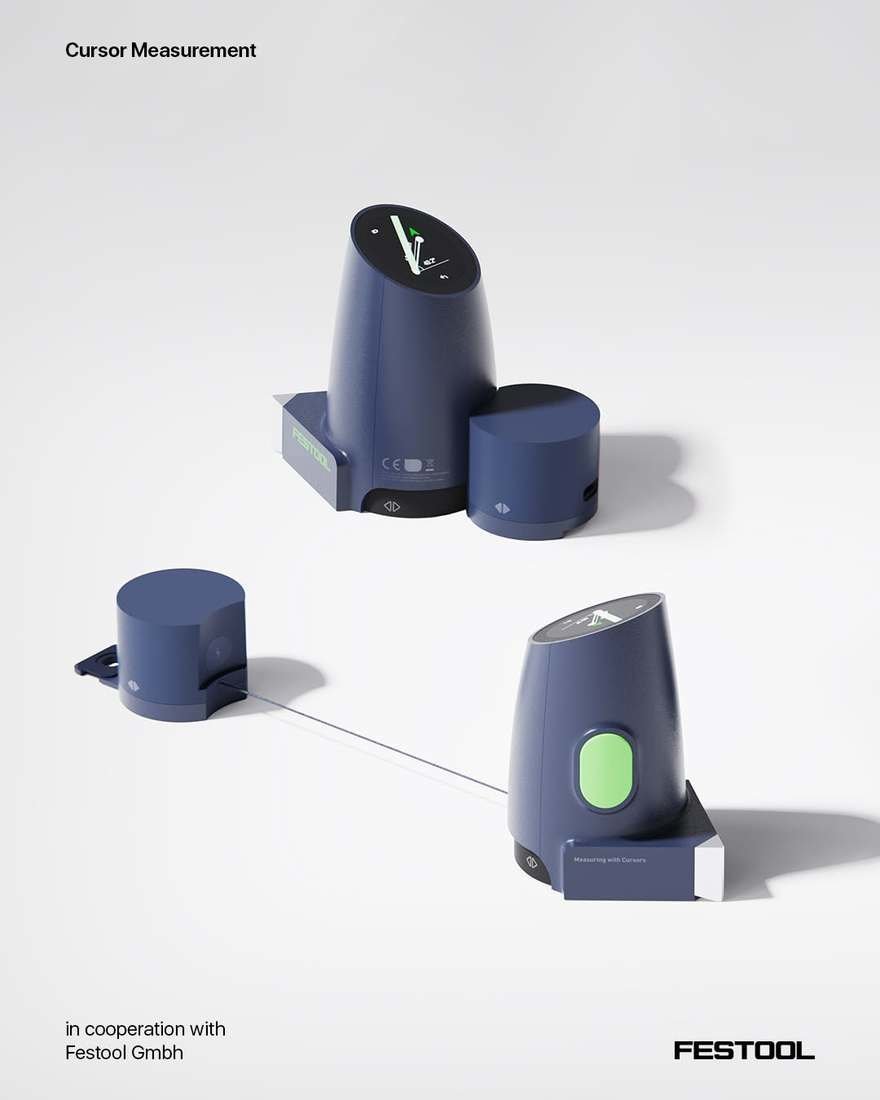 This project is by Ziyan Huang, an Industrial Design Masters candidate at Germany’s Magdeburg-Stendal University of Applied Sciences. Huang’s Cursor Measurement Tool is a proposal for project sponsor Festool. The tool is intended to make it easier for tradespeople to transfer dimensions from blueprints onto the real-world spaces they’re building or installing within.