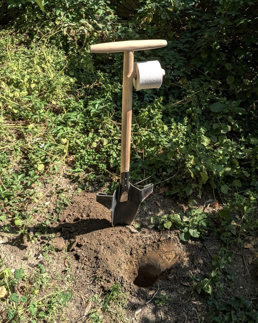In Austria, there are signposted hiking trails where you can bivouac in small abandoned sheds. Savvy hikers on multi-day treks bring their own toilet paper, but these sheds have no bathrooms. Berbig proposes stocking them with this shovel, in order that hikers can relieve themselves while leaving no trace.