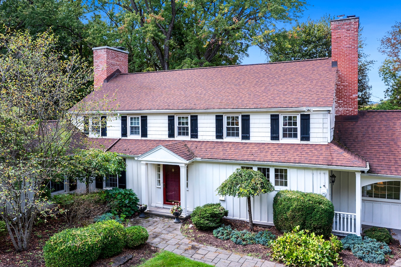 Living areas: Jonathan Woodcock calls his mother’s home a “perfect family house.” There are 2,646 square feet of living space. Guests arrive at the front entrance and can look through to the backyard. The House features gleaming moldings, a new roof, and sun-drenched rooms. The staircase features a gradual rise and wide steps. The spacious living room has a wood-burning fireplace and access to a covered porch and cozy wood-paneled den. The formal dining room can accommodate a large Stickley China cabinet and big table. The lower level is mostly finished. There is a family room downstairs which has an office nook and gas fireplace.