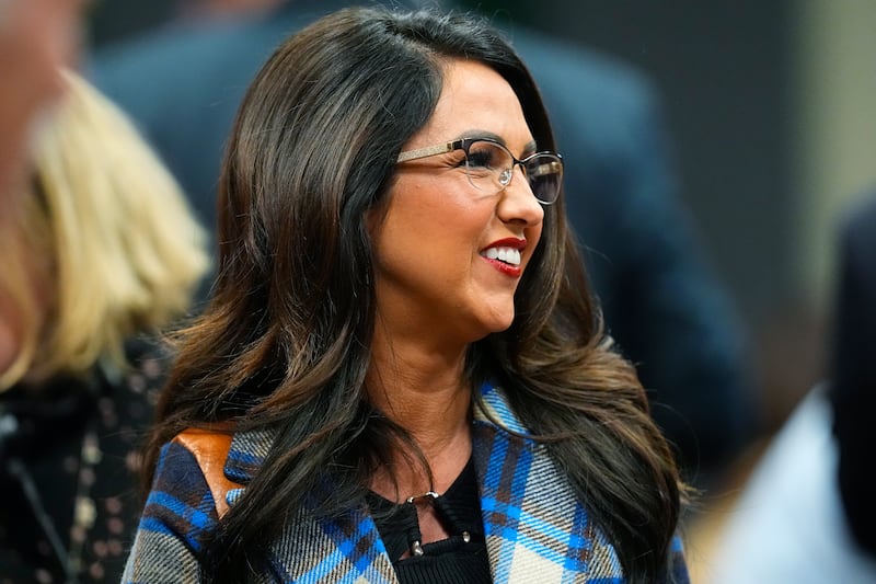 U.S. Rep. Lauren Boebert, R-Colo., talks to attendees before the first Republican primary debate for the 4th Congressional district seat being vacated by Ken Buck Thursday, Jan. 25, 2024, in Fort Lupton, Colo. | David Zalubowski, Associated Press