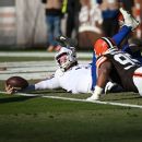 Allen’s injury took place on a sack that was ultimately credited to both Browns defenders Myles Garrett and Alex Wright. On second-and-1 from the Buffalo 23 with 1:09 remaining in the second quarter, Allen dropped back but was pressured quickly and ran around, ultimately going backward to try and avoid Browns defenders before falling to the ground.