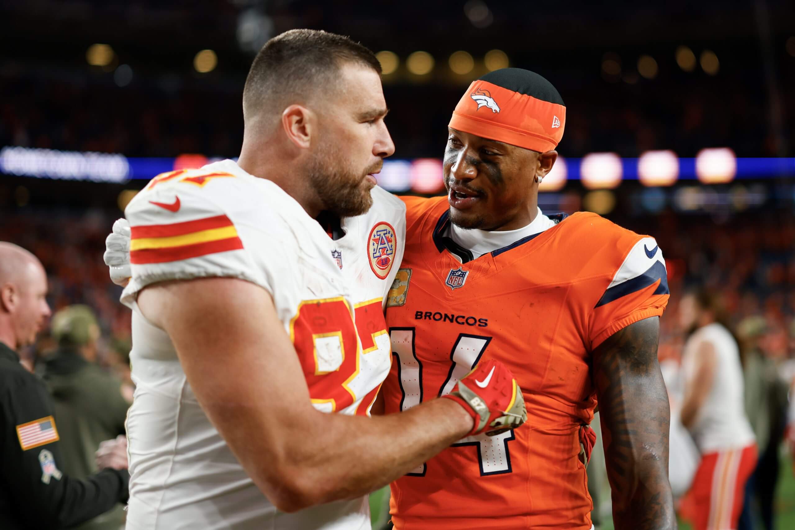 Chiefs tight end Travis Kelce makes his 11th appearance, while Broncos receiver Courtland Sutton is an initial ballot selection for the first time. (Justin Edmonds / Getty Images)
