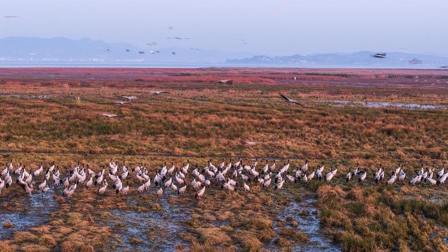 This photo taken on Dec. 3, 2025 shows kiangs (Equus kiang) at the Changtang National Nature Reserve, southwest China’s Xizang Autonomous Region. (Xinhua/Guo Yu)A drone photo shows black-necked cranes at Caohai National Nature Reserve in Yi-Hui-Miao Autonomous County of Weining, southwest China’s Guizhou Province, Dec. 1, 2025. (Xinhua/Yang Wenbin)A ranger interacts with Sichuan golden snub-nosed monkeys in the Pingwu Sichuan golden snub-nosed monkey popular science education base in Pingwu County, Mianyang City of southwest China’s Sichuan Province, May 21, 2025. (Xinhua/Jiang Hongjing)