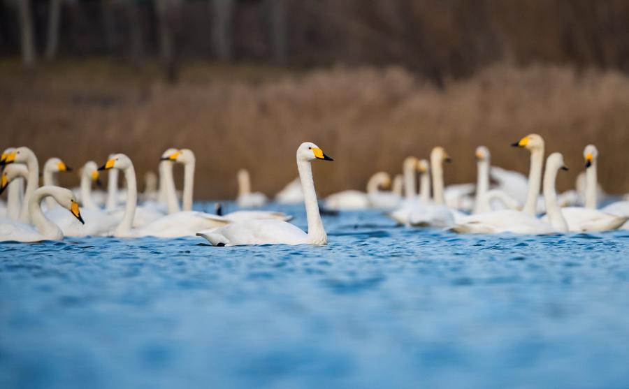 An aerial drone photo taken on June 30, 2025 shows people laying sand barriers at the site of a desertification control project in Zhongewei, northwest China’s Ningxia Hui Autonomous Region. (Xinhua/Wang Peng)This aerial drone photo taken on July 11, 2025 shows the scenery of the Mianduhe national wetland park in Hulun Buir, north China’s Inner Mongolia Autonomous Region. (Xinhua/Ma Jinrui)This photo taken on Dec. 20, 2025 shows swans at a wetland in Sanmenxia, central China’s Henan Province. (Photo by Zhao Yongtao/Xinhua)