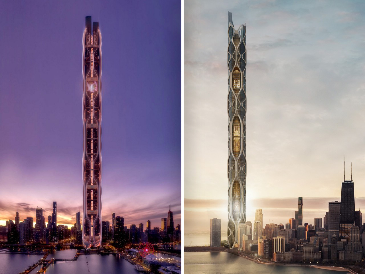 Formally, the building draws inspiration from one of Chicago’s most defining natural elements. Water. The tower’s fluid, organic silhouette mirrors the geometry of a water droplet, symbolizing renewal, continuity, and resilience. This form is not just poetic. It extends Chicago’s green belt upward, turning the skyline into a vertical landscape. Nature is no longer pushed to the city’s edges. It rises with it.