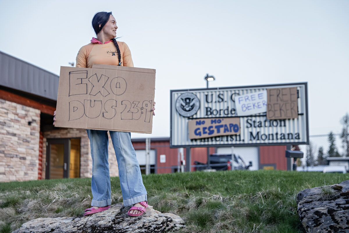 Lena Camero and about 40 others gathered to protest the detention of Beker Rengifo del Castillo at the U.S. Customs and Border Patrol Station in Whitefish on April 24, 2025. Rengifo del Castillo is a Venezuelan asylum seeker who had taken up residence in the Flathead Valley. Hunter D’Antuono | Flathead Beacon