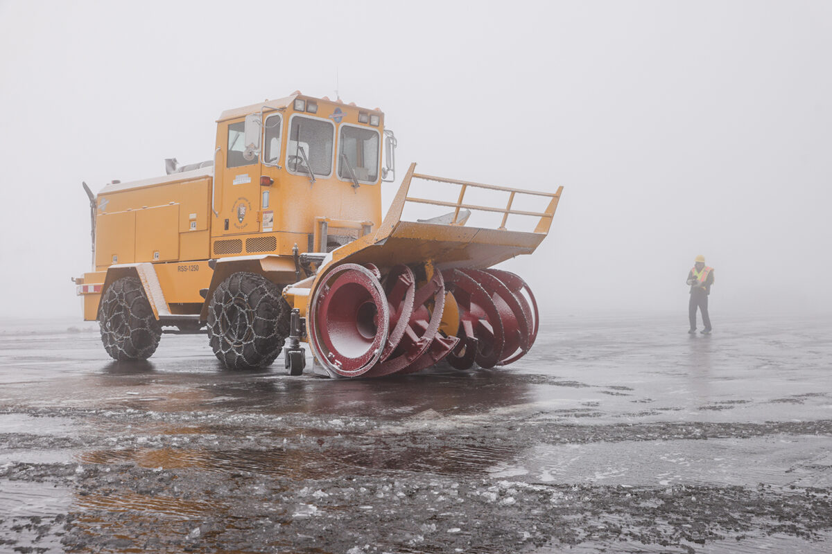 A rotary snow blower parked on Logan Pass in Glacier National Park on May 19, 2025. Hunter D’Antuono | Flathead Beacon