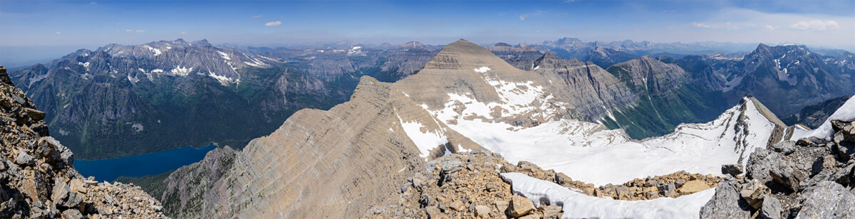 Bowman Lake, Mount Carter and Rainbow Glacier as viewed from the summit of Rainbow Peak in Glacier National Park on July 8, 2025. Hunter D’Antuono | Flathead Beacon