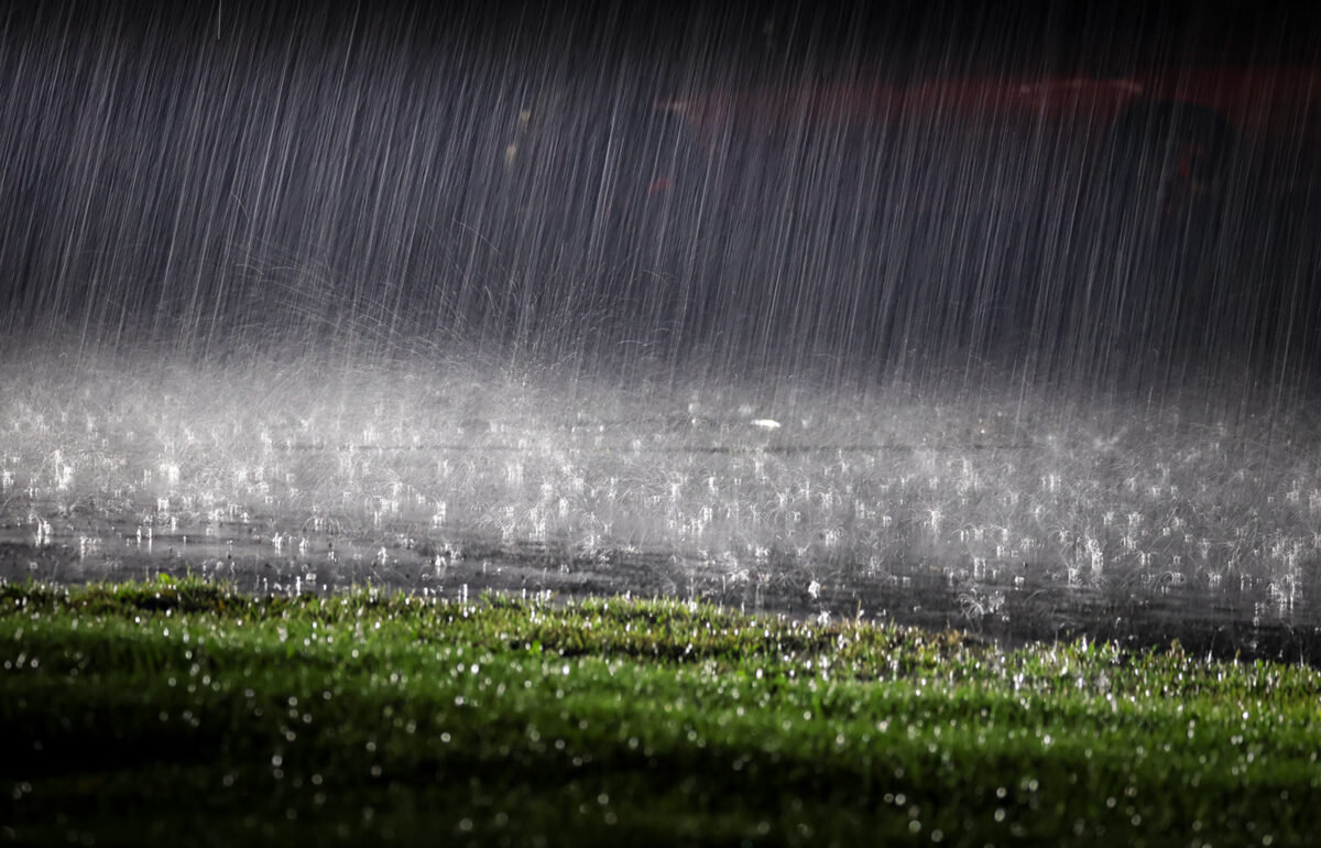 Heavy rain on a Kalispell city street on Sept. 13, 2025. Hunter D’Antuono | Flathead Beacon