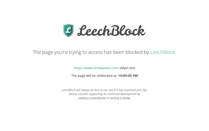 LeechBlock is a free browser extension for people who want a straightforward way to block distracting websites. The extension lets you select which sites you want to block, then prevents your browser from loading them.