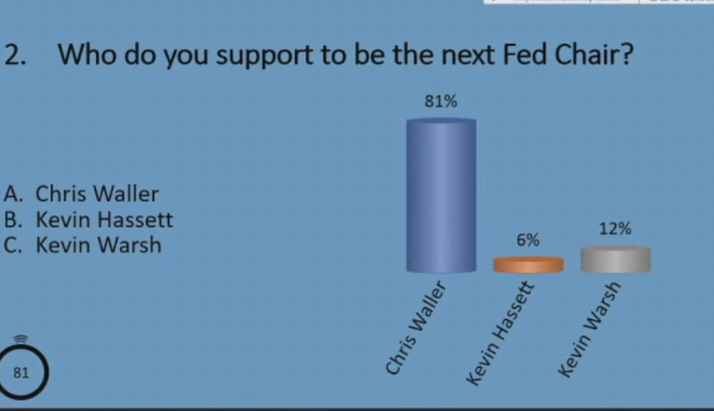 Waller is a lifelong Republican who has a knack for getting along with very different constituencies, all of whom respect his genuine expertise, personal humility and willingness to listen. Even CEOs who disagreed with certain aspects of Waller’s arguments clearly appreciated his constructive engagement, as well as his intellectual honesty and independence. When we polled the room, as reported by Nick Timiraos of The Wall Street Journal, a whopping 81% of CEOs picked Waller as their top choice for Fed Chair, building on prior polls done by CNBC showing a majority of market participants prefer Waller, as well as prominent endorsements from publications such as The Economist.