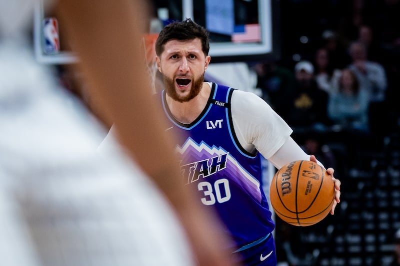 Svi MykhailiukUtah Jazz guard Svi Mykhailiuk (10) runs toward the basket during an NBA game against the Orlando Magic at the Delta Center in Salt Lake City on Saturday, Dec. 20, 2025. | Tess Crowley, Deseret News