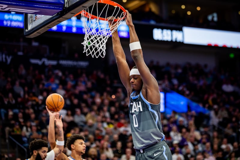 Taylor HendricksUtah Jazz forward Taylor Hendricks (0) fails to make a basket during an NBA game against the Oklahoma City Thunder at the Delta Center in Salt Lake City on Sunday, Dec. 7, 2025. | Tess Crowley, Deseret News