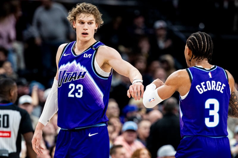 Lauri MarkkanenUtah Jazz forward Lauri Markkanen (23) slaps hands with guard Keyonte George (3) after Markkanen made a basket during an NBA game against the Boston Celtics held at the Delta Center in Salt Lake City on Tuesday, Dec. 30, 2025. | Isaac Hale, Deseret News