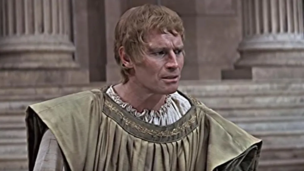 You know that actor you remember without any special effects, heavy makeup, or over-the-top gestures? That’s Charlton Heston: imposing, intense, and impossible to forget once he’s on screen. In Julius Caesar, he’s the Mark Antony you both fear and admire — the guy who owns every scene with just a gesture and every line from Shakespeare’s classics. Then, when he comes back as Antony in Antony and Cleopatra (since the character is needed in both stories), it’s not a repeat, because he shows a more vulnerable side, caught between romance and politics. And it’s really fascinating to see Heston make the leap from calculating general to passionate man without losing the authority we expect.