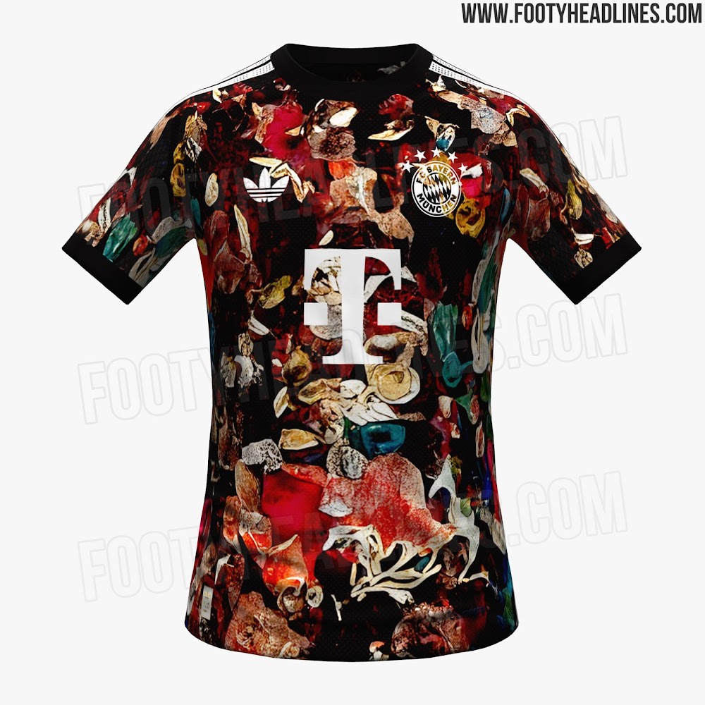 Fourth Kit: The standout kit in Bayern’s 2026-27 collection is the never-before-seen fourth kit, featuring a black base with a multicolor all-over pattern.