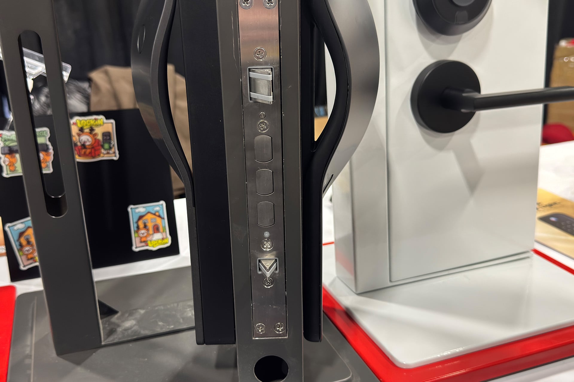 Wireless charging comes from a small module that you would place on a table within four meters of the lock, though a Lockin representative told me owners can mount it on a wall. They also said it works best positioned directly in front of the lock, rather than at an angle. The V7 Max will be Matter-compatible, which makes it usable with any major smart home platform that supports the universal standard. Finally, the V7 Max is neither a normal door handle nor a deadbolt replacement; it’s a mortise lock, which is more common in commercial buildings and would require significant rejiggering to install on the front of your house; unless you’re extremely handy, you’ll want a professional to put it in.