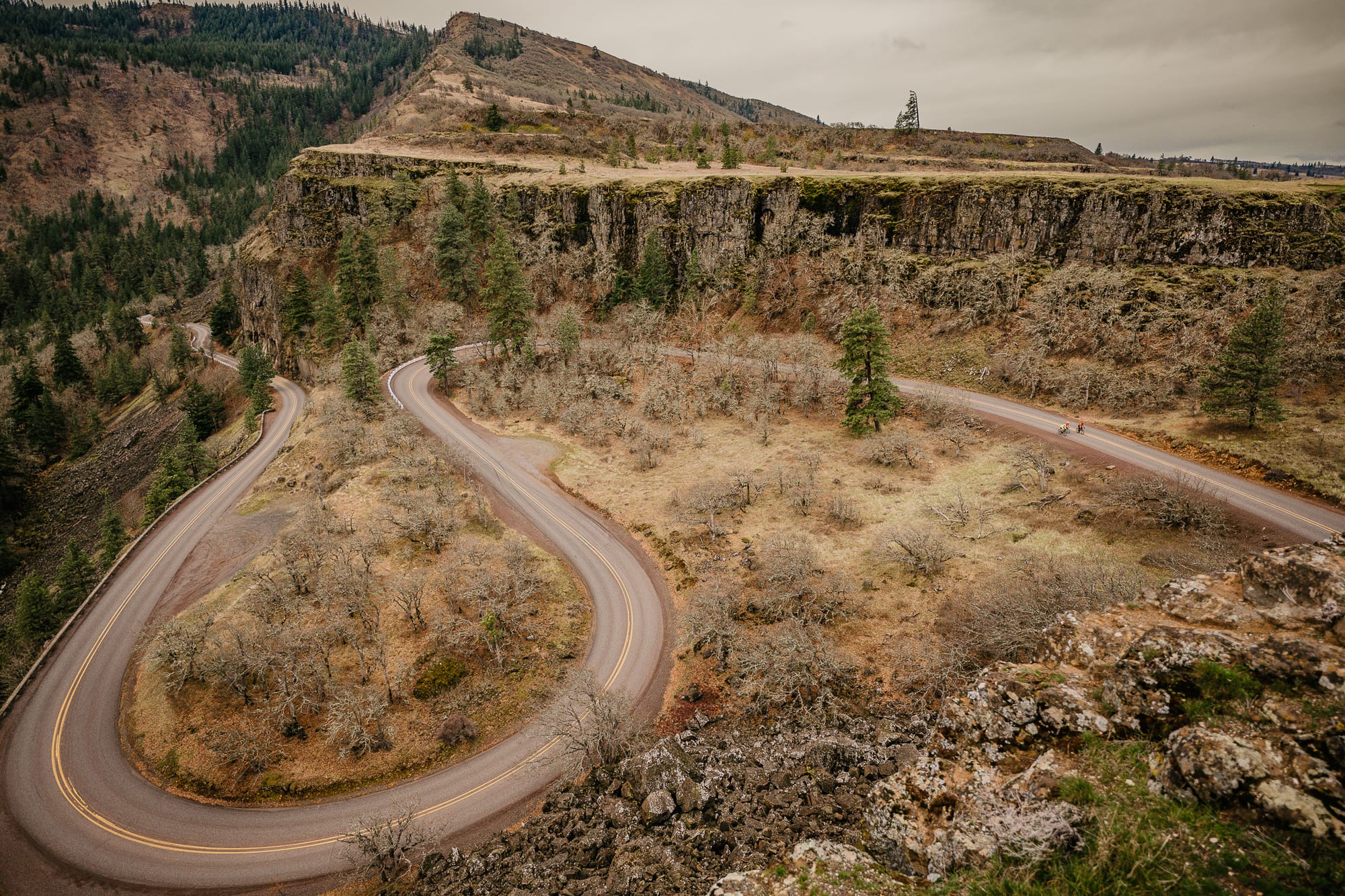 Rowena Roubaix is the name of a road race that was held last year in The Dalles, Oregon. I love this photo of the curvy roads that the race was held on. It was so special taking photos of the racers pushing hard to get up this long climb and seeing them descend fast to head to the finish line. | Photo by Jesse Ortiz (@jayortiz)