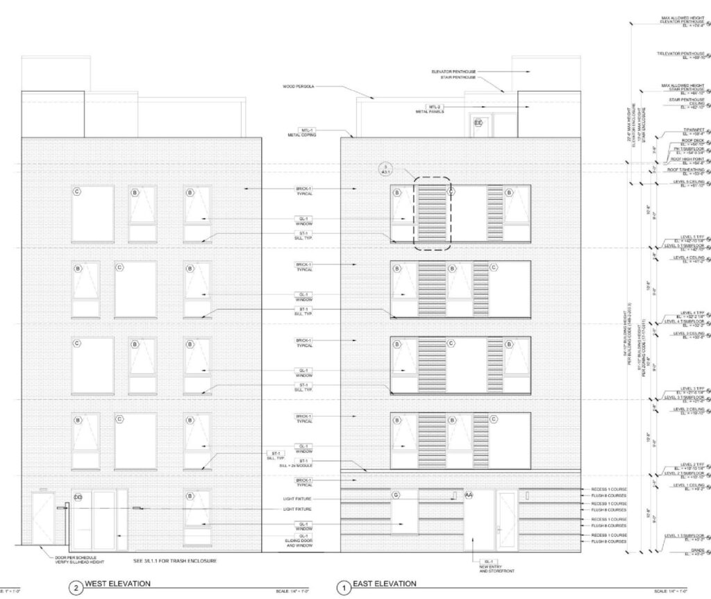 Most units will not have private outdoor space; however, a shared rooftop deck will be provided. The building will be clad in gray brick with black metal accents. Due to its relatively small size, the project will only require approval for select zoning variances, such as the removal of parking requirements. A community meeting will be held soon, though no timeline has been announced.