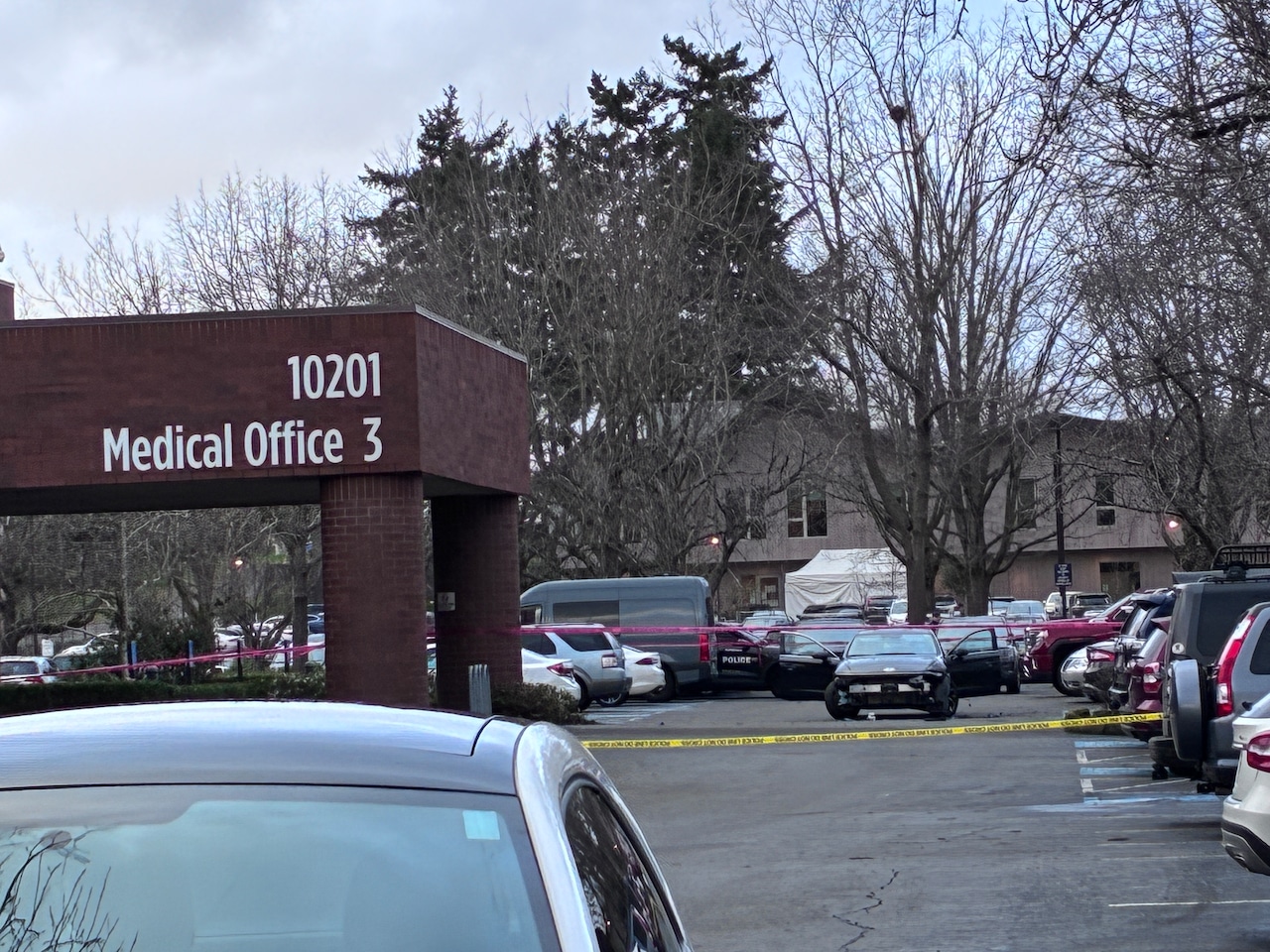 Police first got a call at 2:18 p.m. about a report of the shooting outside the medical office and six minutes later received a report from the driver who had been shot seeking help in the area of Northeast 146th Avenue and East Burnside. Officers found a man and woman with gunshot wounds who were taken to separate hospitals. Police said they didn’t know their conditions.