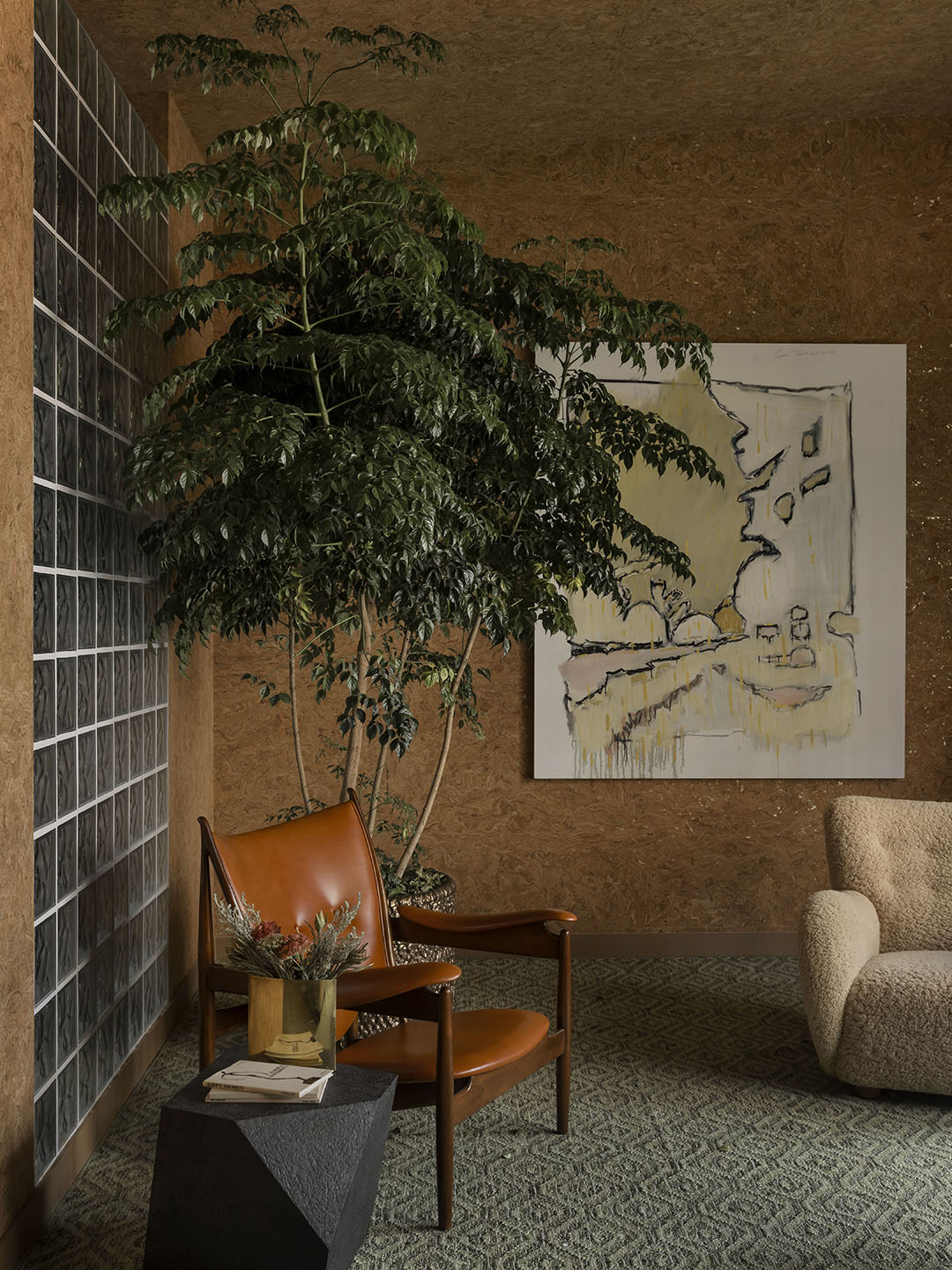 Soft, cozy, and a natural sound barrier, cork can be used to add an intriguing (and practical) layer to bedrooms, living areas, and even dining nooks. In Stephanie Savage’s L.A. home, for instance, cork walls allow the producer to get creative—after all, she can pin inspo to the surface with ease. You can even fake the look with wallpaper, like in this lounge (pictured above) by Huniford Design.