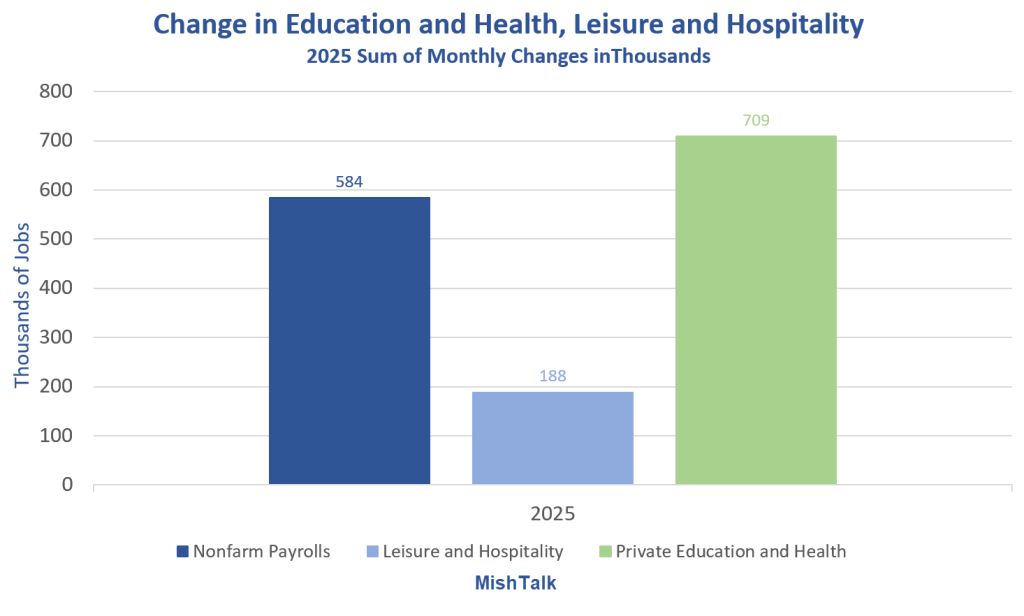 Together, PE&H + L&H provided 897,000 jobs of the 584,000 total jobs. Government subtracted 149,000 (a good thing).