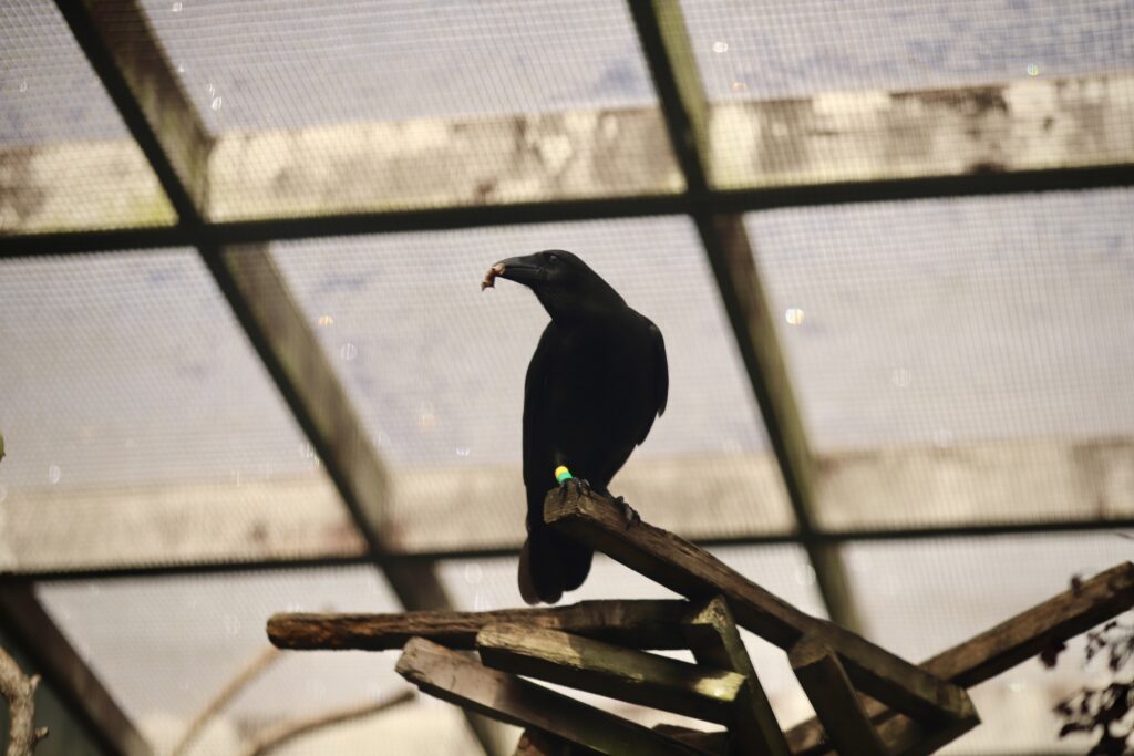 ʻAlalā are one of the few species that are known tool users, and they have been observed using sticks to retrieve insects to eat. (Courtesy: San Diego Zoo Wildlife Alliance)