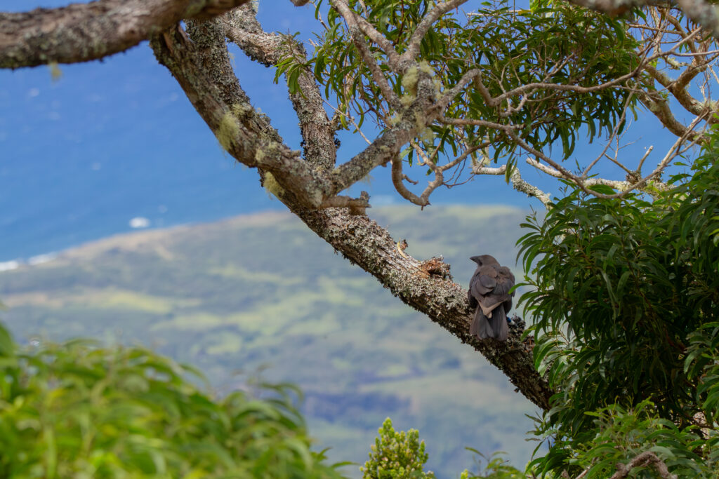 Five young ʻalalā were released in a remote area of Kīpahulu Forest Reserve, where they continue to be monitored by field researchers. (Courtesy: Maui Forest Bird Recovery Project)