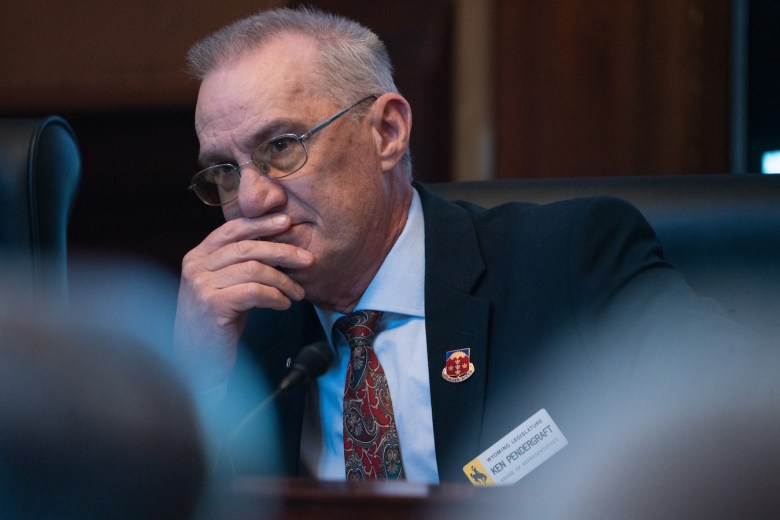 Rep. Ken Pendergraft, R-Sheridan, listens during the Wyoming Legislature’s 2025 general session. (Mike Vanata/WyoFile)