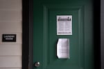 A “Know Your Rights” flyer is posted on the laundry room door at Bria Apartments.