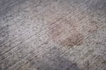 The remnants of a blood stain mark the sidewalk at Bria Apartments in Portland, Ore., on Jan. 9, 2026.