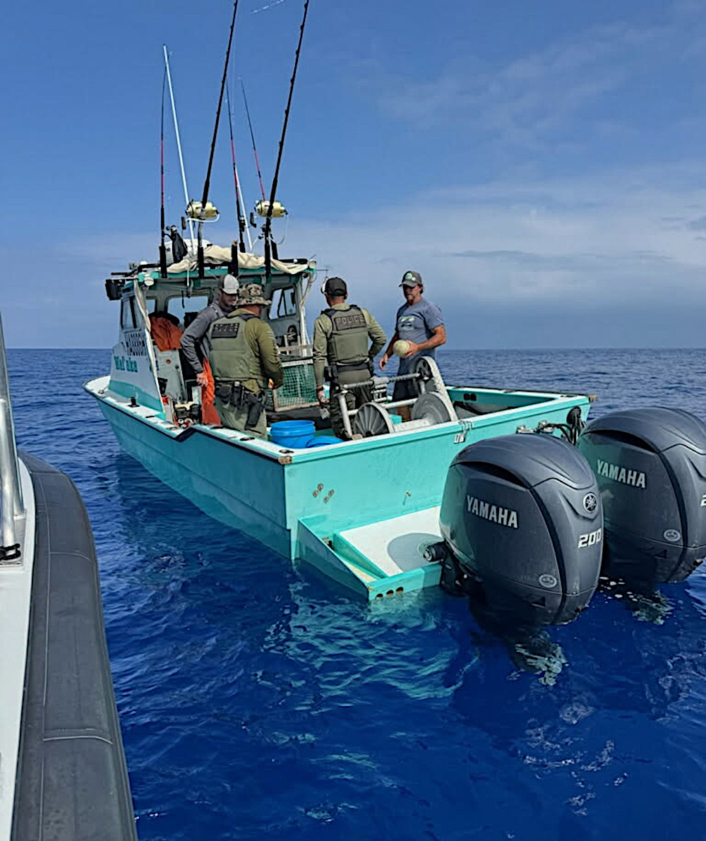 Hawaiʻi DLNR photo shows the vessel Waiʻaka during the enforcement action in May 2025.