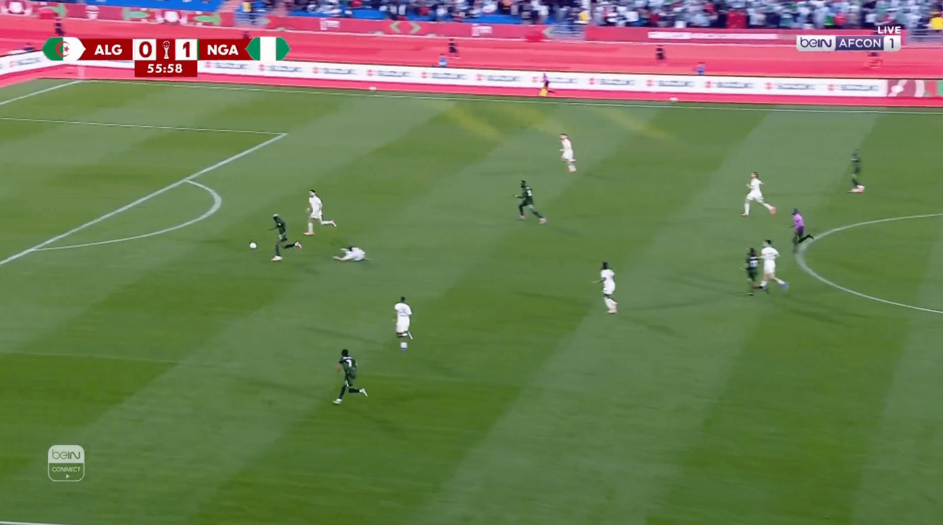 A volunteer who ran onto the pitch actually slipped and wiped out Onyemaechi to add to the drama. Algeria’s fans let off a bright red flare. Everything descended into chaos and fights broke out across the pitch.