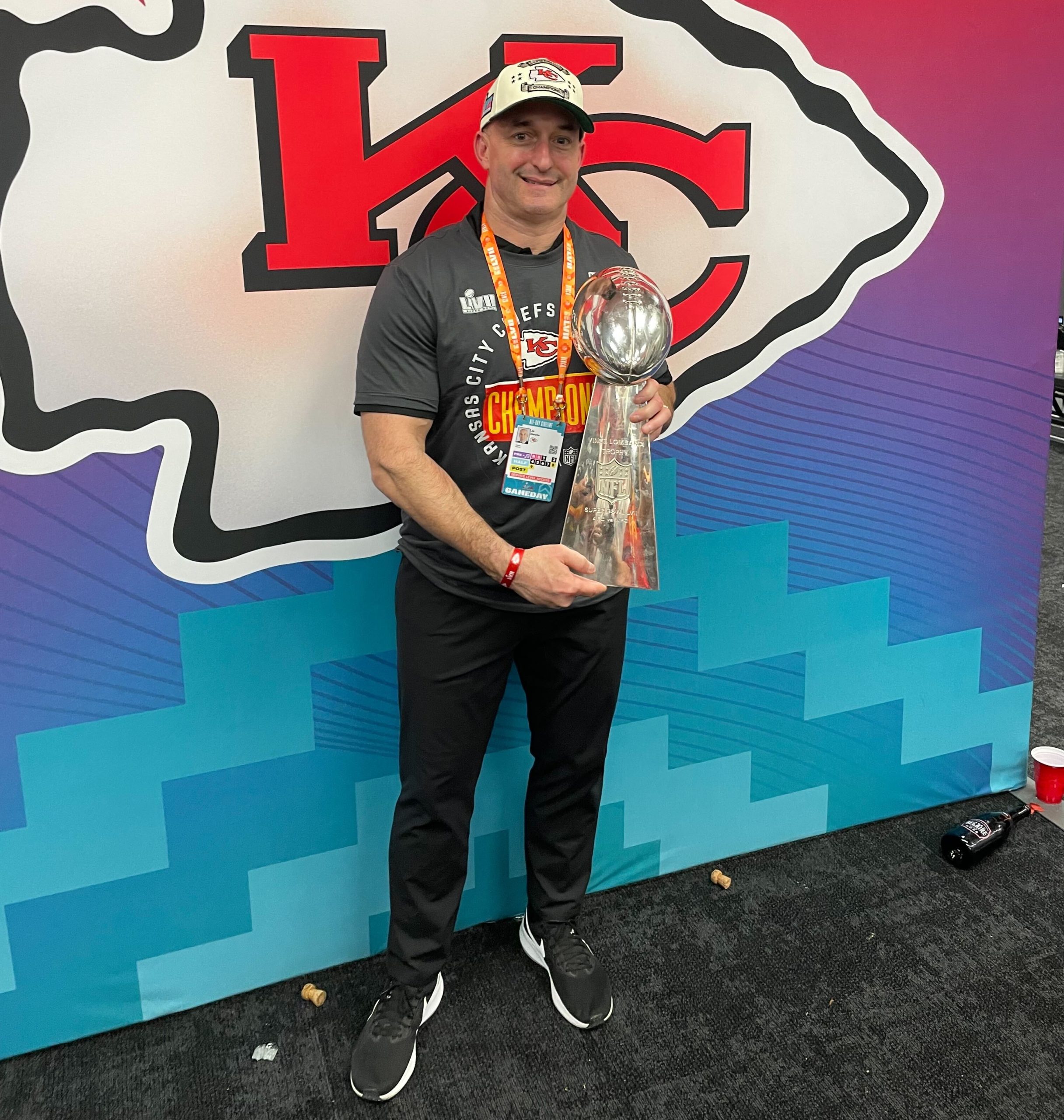 J.P. Darche poses with the Lombardi Trophy after the Kansas City Chiefs won the Super Bowl against the Eagles in 2023. (Courtesy of J.P. Darche)