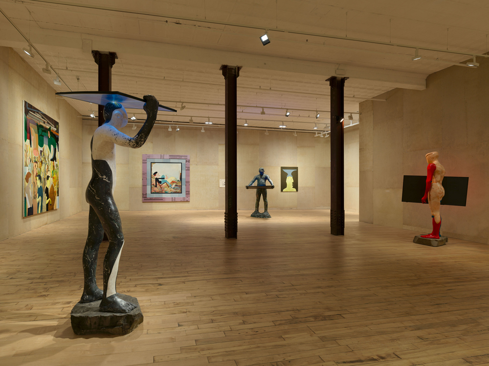 Nicole Eisenman: STY, installation view. Courtesy 52 Walker. Pictured, left: Archangel (The Visitors), 2024. Right: The Bunker, 2025.
