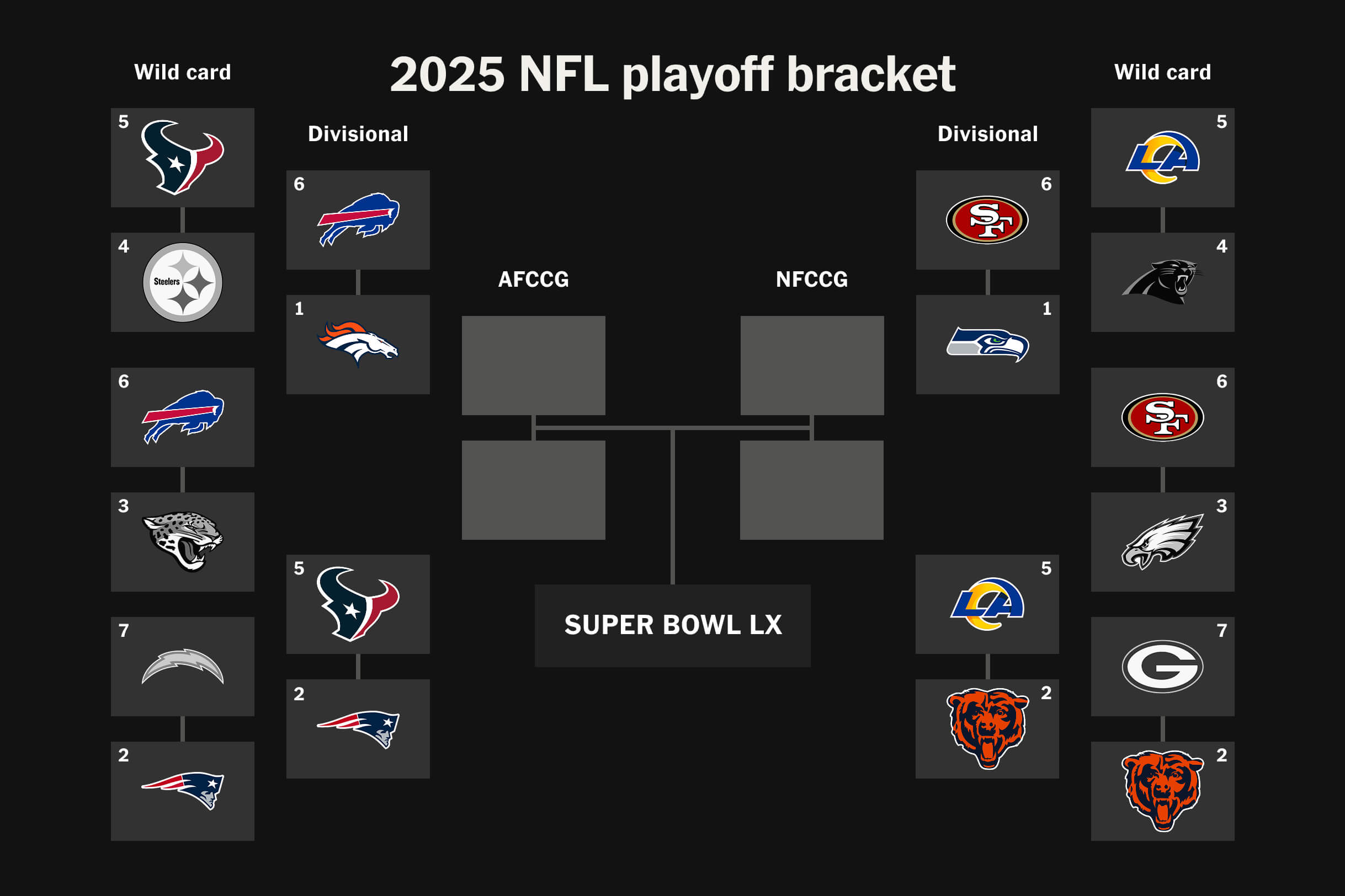 The winners of next weekend’s games will advance to the conference championship games to be played on Jan. 25. Super Bowl LX is scheduled for Feb. 8 at Levi’s Stadium in Santa Clara.