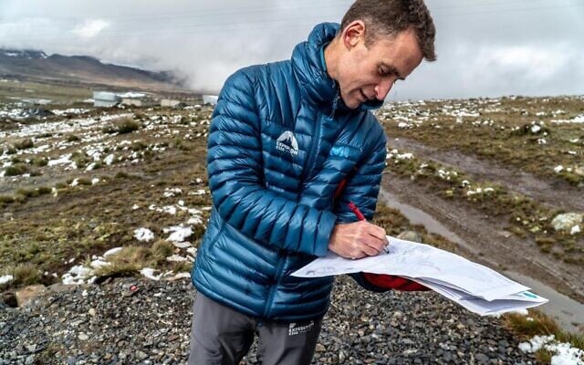 Prof. Gad Asher of the Weizmann Institute of Science’s Asher Lab notes measurements in an experiment on how low oxygen affects the body’s circadian clocks in La Rinconada, Peru, the highest permanent settlement in the world, in 2020. (Courtesy/Asher Lab)